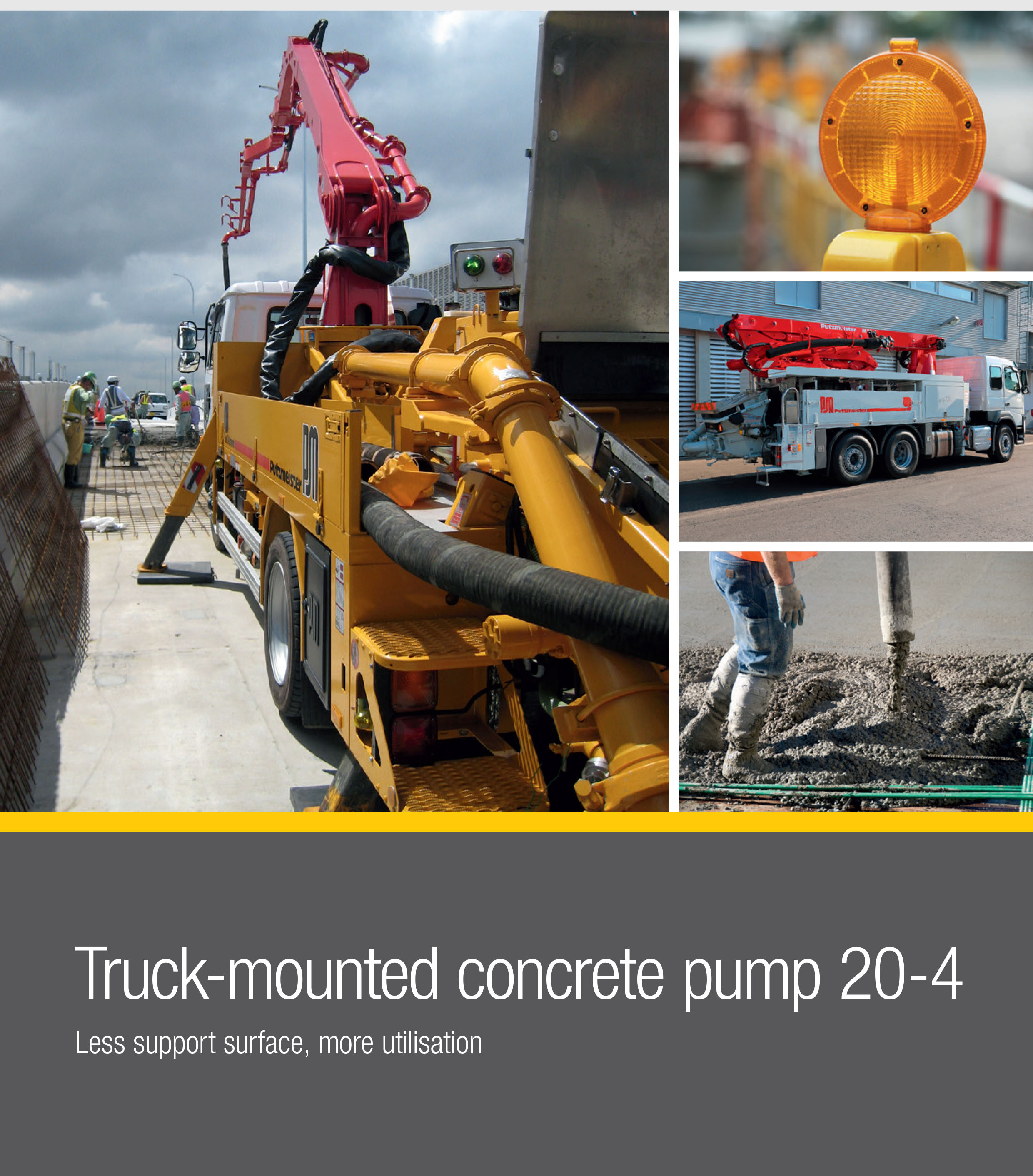 The Putzmeister M20-4 concrete pump is a small machine that can be used in a wide range of applications, including handling low to mid volumes concrete pours at small and tight constructions sites, pours inside buildings which require low unfolding height, and refurbishment.